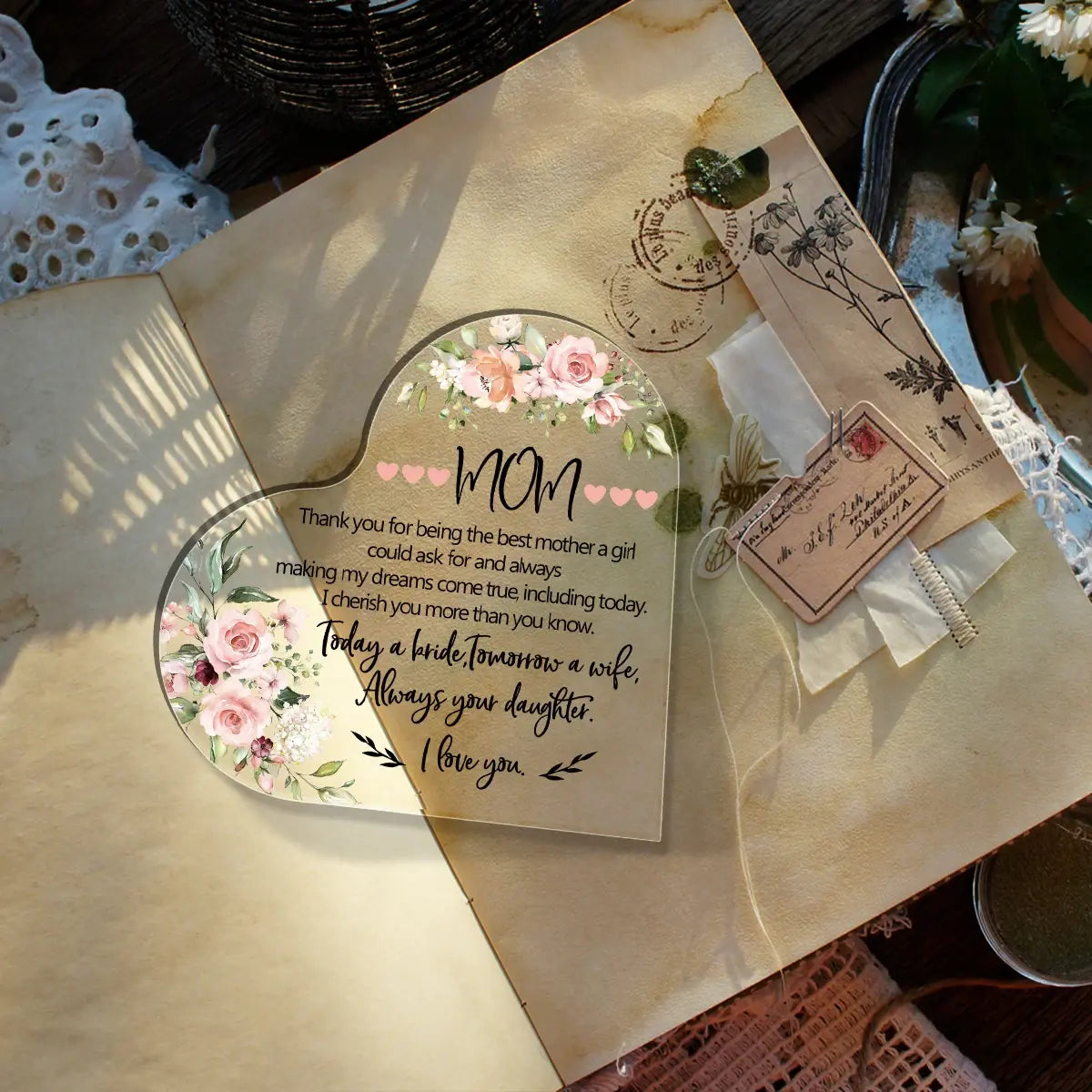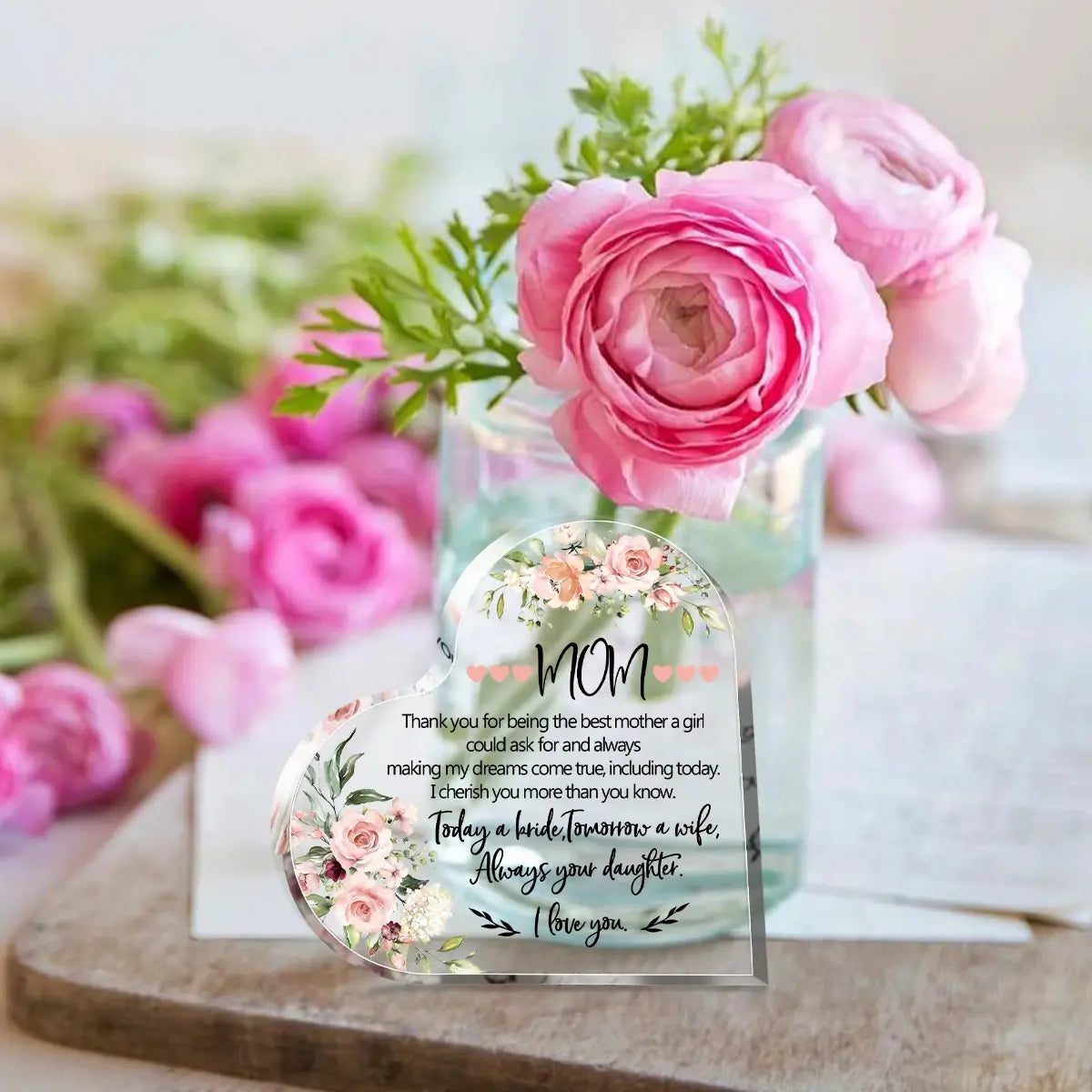 This acrylic heart plaque is the perfect gift for Mother's Day. Crafted with precision, it features a charming heart-shaped design and a durable material that will stand the test of time. Show your love and appreciation for mom with this beautifully crafted plaque.
